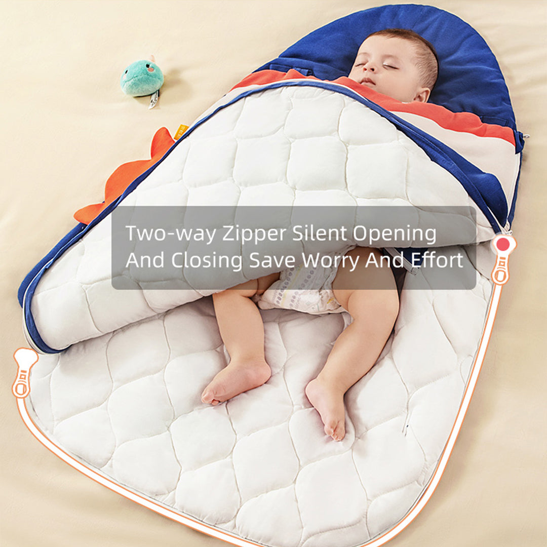 Newborn Baby Swaddle Bag, 100% Cotton, Cute Dino Design, Two-Way Zipper, Baby Sleeping Bag